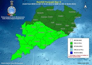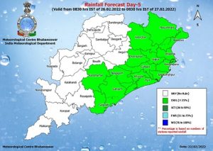 Bhubaneswar: The regional centre of the India Meteorological Department (IMD) here on Tuesday extended the rain forecast over Odisha for three days, February 25, 26 & 27. It has also issued an yellow warning for February 26. The IMD on Monday forecast rain in the state on February 26 & 27.