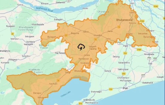 Bhubaneswar: The India Meteorological Department (IMD) has issued an orange warning for Khurda district in Odisha till 5.42 pm on Wednesday.