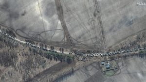 Kyiv: New satellite images from Maxar show a massive Russian military convoy has reached the outskirts of Ukrainian capital Kyiv. The convoy stretches for about 64 km.
