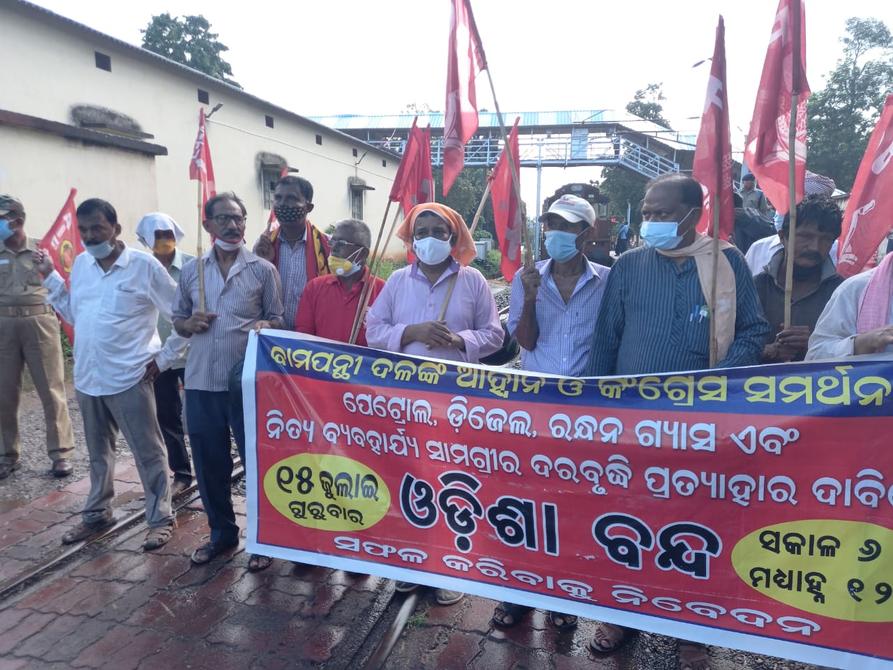 In Bhubaneswar, the activists of the CPI, CPI (M), CPIM(L) and Forward Block staged rail roko at the railway station disrupting train services on several routes. They also blocked roads in different areas of the city and picketed in front of the central government offices while appealing to the people to support the bandh.