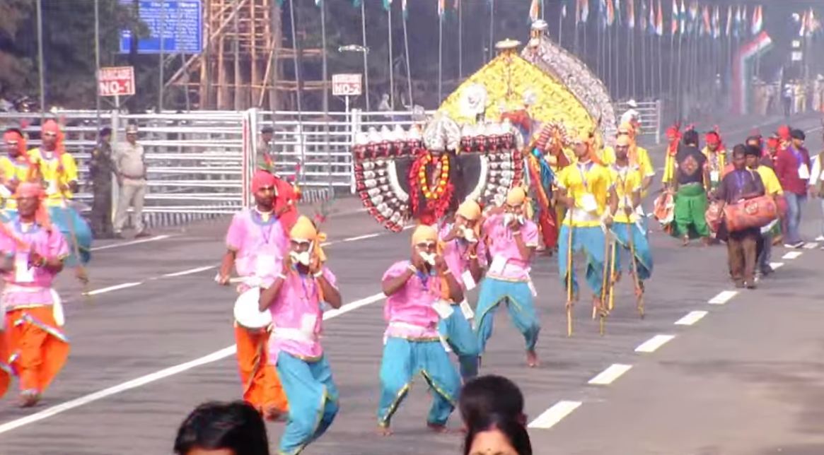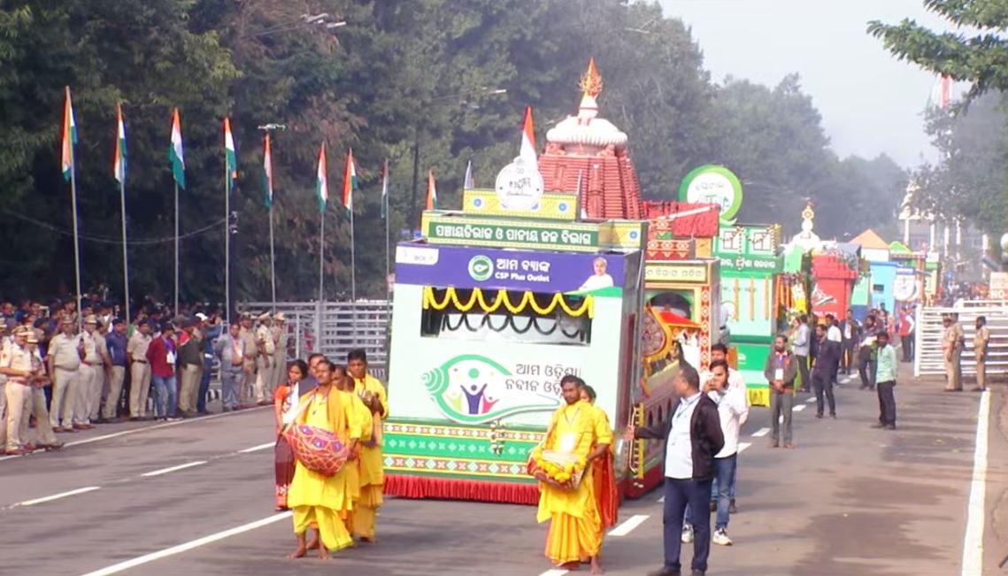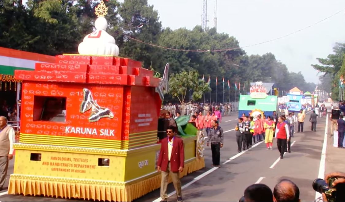 Tableau of 12 key departments, including agriculture, health, education, Panchayati raj and drinking water, works department, Handlooms, Textiles & Handicrafts Department, Tourism, OSACS, OMC and fire, rolled down Mahatma Gandhi Marg, highlighting various initiatives of the Odisha government.