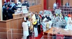 The Congress MLAs also locked another gate to ensure the minister cannot enter the House. However, Assembly secretariat staff later broke the lock.