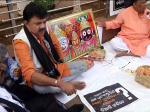 On Tuesday, BJP MLAs performed puja in front of a photograph of Lord Jagannath to the beating of ‘ghantas’ and distributed ‘prasad’. The BJP said they prayed to the Lord to help Chief Minister Naveen Patnaik see reason.