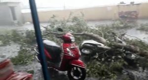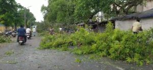 However, Fire personnel were engaged in cutting the felled trees to clear the roads. The power distribution company cut off the power supply to prevent any mishap. Its personnel were also repairing the damaged lines to restore power supply in the town.