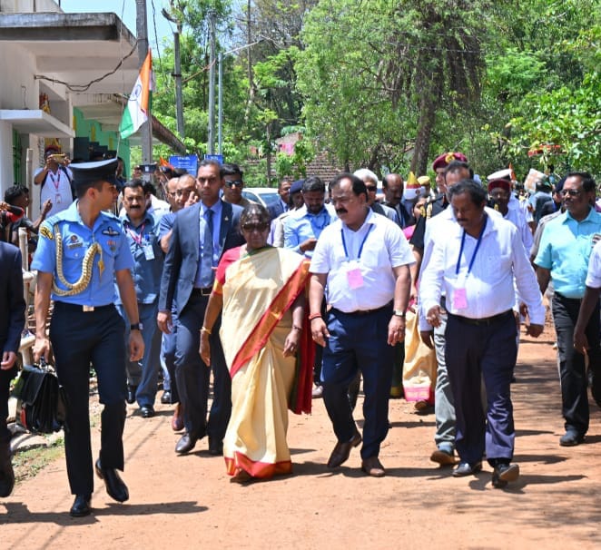 Earlier, the President landed at Badampahar helipad in the tribal-dominated district in an Indian Air Force (IAF) helicopter amid tight security, in her first visit to her birthplace after assuming the high position.