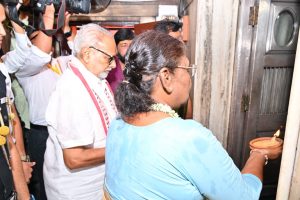 Earlier in the day, her convoy left the Raj Bhavan in Bhubaneswar and travelled by road to Cuttack amid tight security. After paying obeisances to Maa Cuttack Chandi, she visited the residence of Utkal Gourab Madhusudan Das on the premises of Shailabala Women’s Autonomous College and paid floral tributes at his statue.