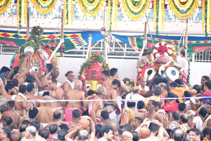 Snana Jatra, also known as Deba Snana Purnima, is a ceremonial bath ceremony of the sibling deities held on Purnima (full moon day) of Jyestha month.