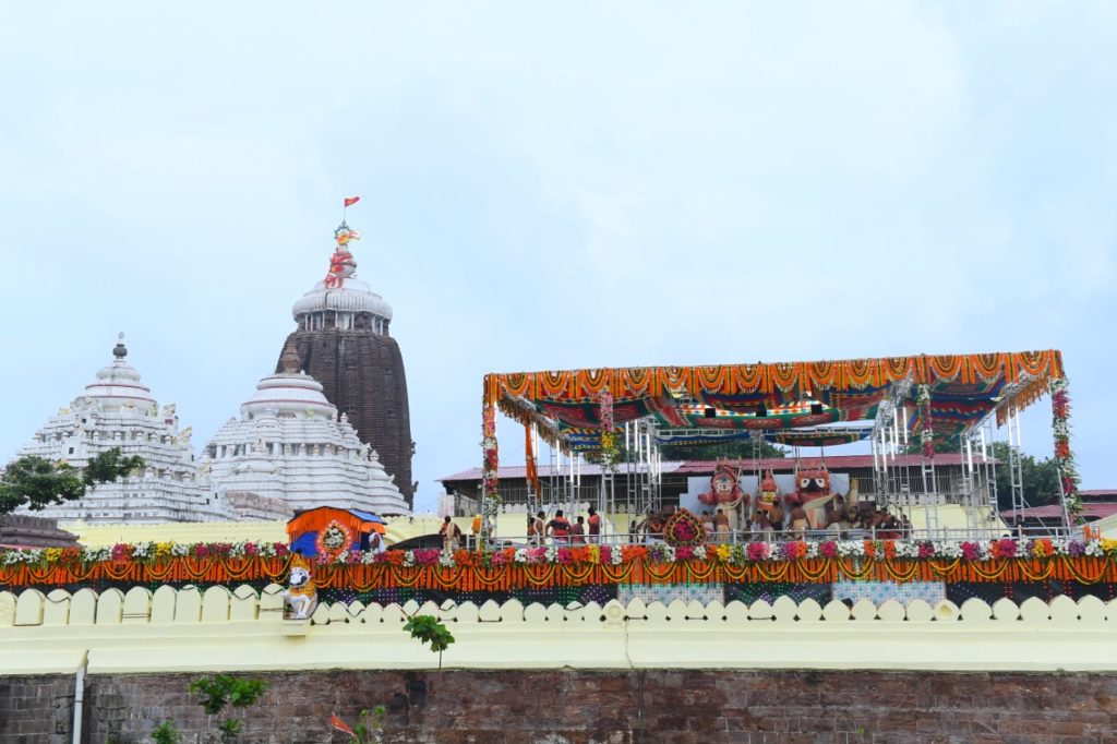 As per tradition, these 108 pots of water are collected from ‘Suna’ well near Sitala temple inside the temple premises and stored at a place called ‘Adibasha Gruha’. This water mixed with extracts of various aromatic herbs is used to bath the deities.