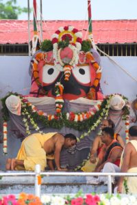 This ritual is carried out at the ‘Snana Mandapa’ (bating alter) where the Lords are brought after a series of early morning rituals in a ‘Pahandi’ (procession).