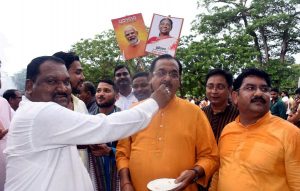 He celebrated the occasion with BJP legislators, leaders and workers by exchanging sweets in the party headquarters in Bhubaneswar. There was celebration in party offices in all district headquarters of the state also.