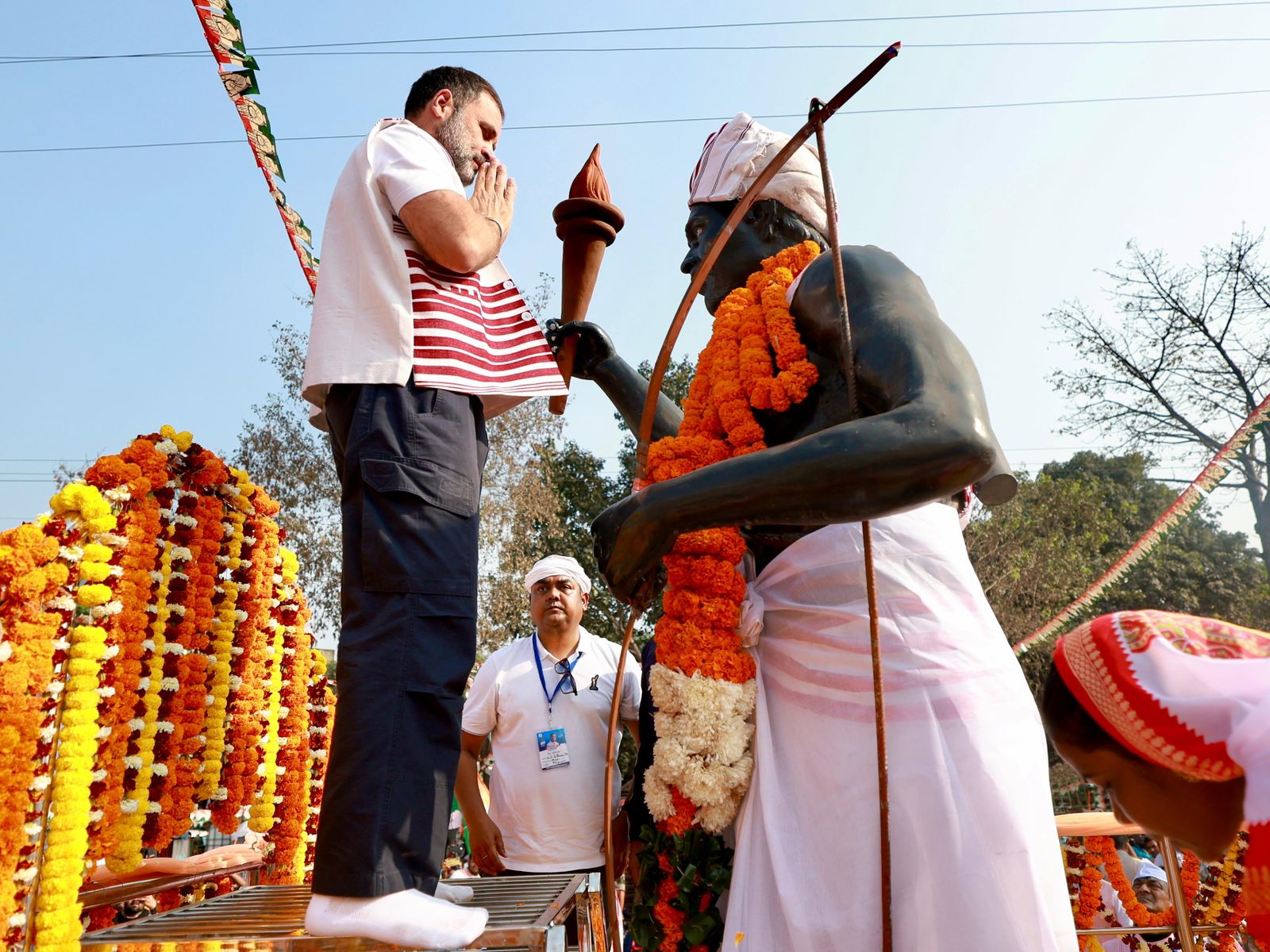 After a lunch break at Bisra Munda Ground at Ranibandh, Rahul attended two more gatherings at Kutra and Baragaon later in the afternoon. He then resume his yatra from Ranibandh and undertook another 1-km padayatra from Rajgangpur to Sundargarh town this evening, where he garlanded the statue of tribal freedom fighter Birsa Munda.