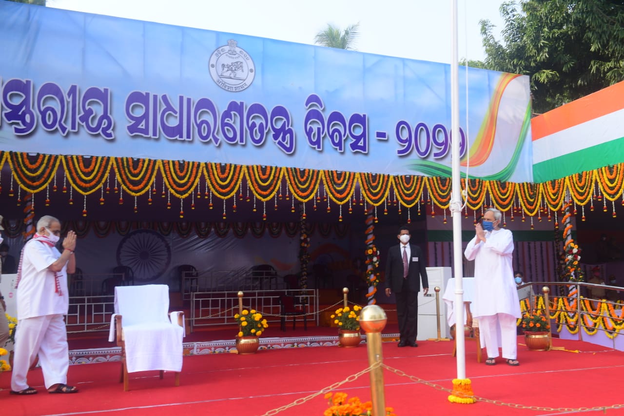 Governor Prof Ganeshi Lal hoisted the National Flag and took the salute in the presence of Chief Minister Naveen Patnaik.