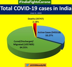 Also, India’s recovery rate remains at 64.55 per cent. The fatality rate of cases has dipped a bit to 2.18 per cent and is falling progressively, according to a PIB release.