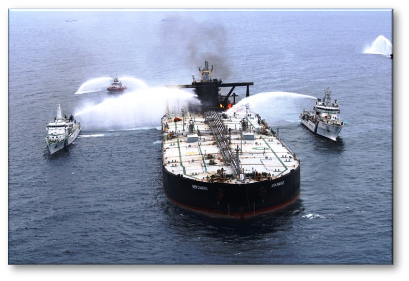 Indian Coast Guard (ICG) carried out a major operation on board Very Large Crude Carrier (VLCC) ‘MT New Diamond’, by protecting the entire highly inflammable cargo Kuwait Export Crude despite a raging fire and intermittent explosions.