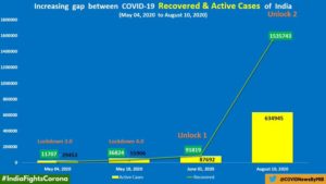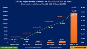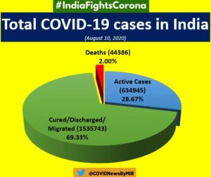 According to the Union Health Ministry, the cumulative recovered cases (15,35,744) have surpassed the active cases by 9,00,799. The recovery rate stands at 69.33 per cent crossing the peak of 15 lakh.