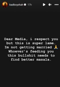 New Delhi: Rapper Badshah on Sunday denied wedding rumours with his girlfriend, actor Isha Rikhi. Taking to Instagram, Badshah shared a note on his stories and wrote, “Dear media, I respect you but this is super lame. Im not getting married. Whoever’s feeding you this bullshit needs to find better masala.”