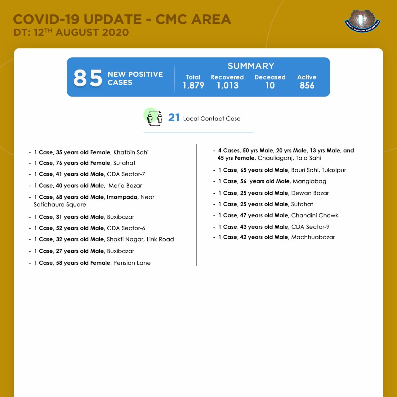 Cuttack: The Millenium City reported 85 new COVID-19 cases in the last 24 hours, which pushed the affected tally to 1879 on Wednesday.