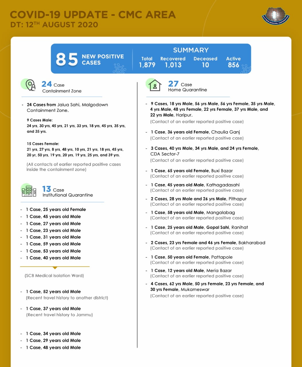 With 10 deaths and 1013 recoveries, Cuttack city now has 856 active cases.
