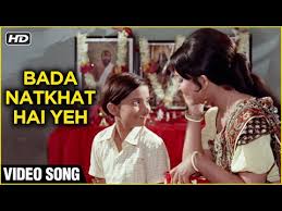 In the 1972 flick Amar Prem, Sharmila Tagore is looking for her naughty son. The song is about the relationship between a mother and a son and uses the mythological story to draw similarities between them both. The song shows the helplessness of a mother who is tired of her troublesome son while also expressing the unbreakable bond of love between the two, just like Yasoda’s relationship with Krishna.