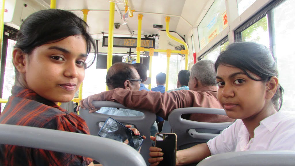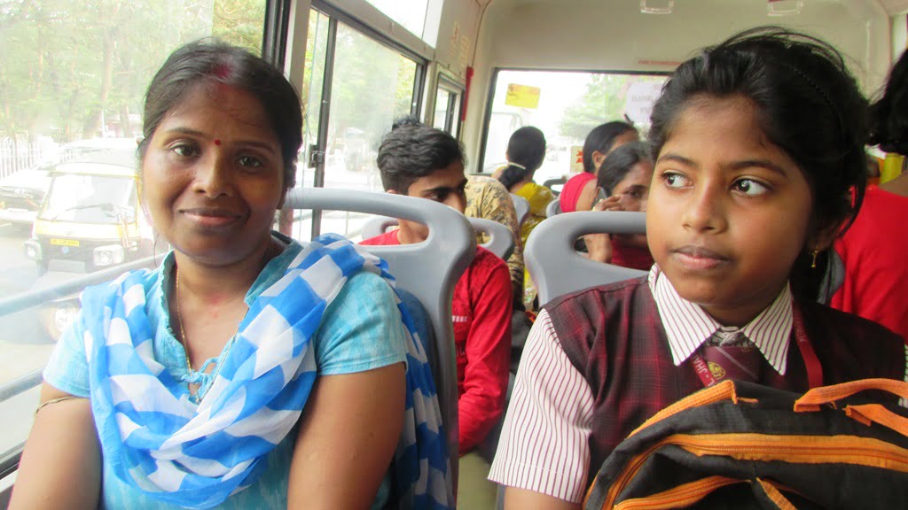 I happened to meet Malati Sethi, a 38-year-old mother, who boards ‘Mo Bus’ every day to accompany her 12-year-old daughter, Sneha, returning from a local English Medium School.