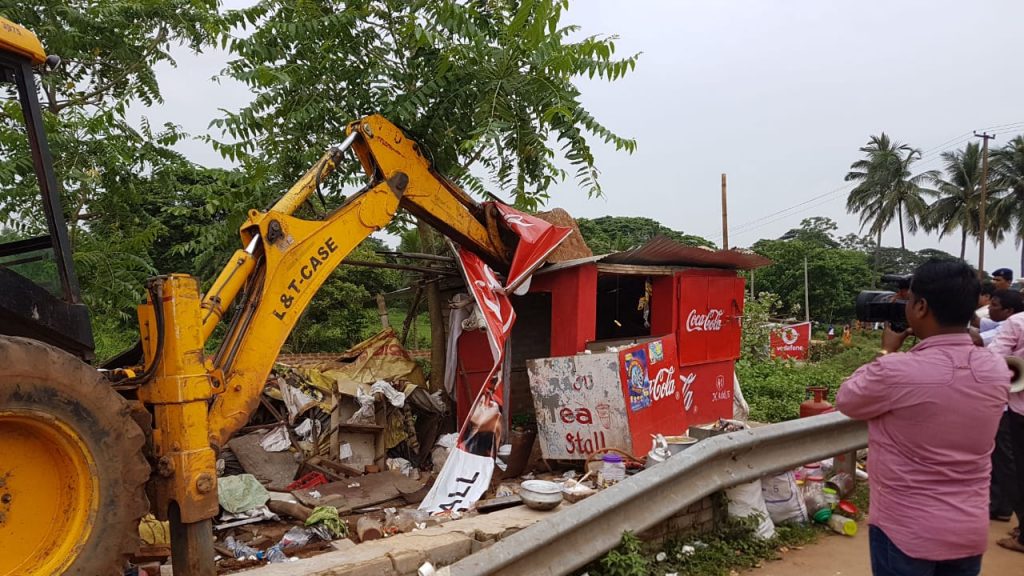 Bhubaneswar: A joint squad of the Bhubaneswar Development Authority (BDA), Bhubaneswar Municipal Corporation (BMC), National Highways Authority of India (NHAI) and Commissionerate police on Wednesday removed 108 temporary structures between Saptasati Temple and Hi-Tech Square near GGP Colony here.
