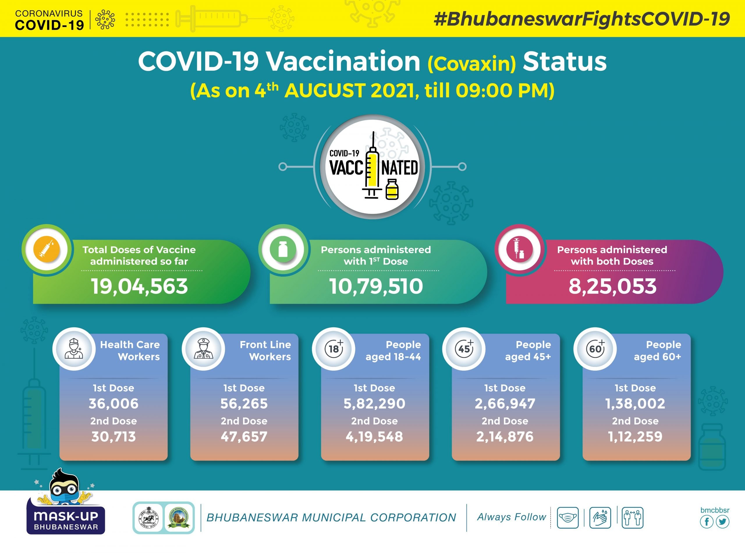 According to available data, 8.25 lakh of the eligible population in Bhubaneswar have received both Covaxin jabs. “Since our eligible population is 8.5 lakh and we have used doses more than the double, we have achieved 100 per cent vaccination,” BMC Commissioner Sanjay Singh was quoted as saying by The Times of India.