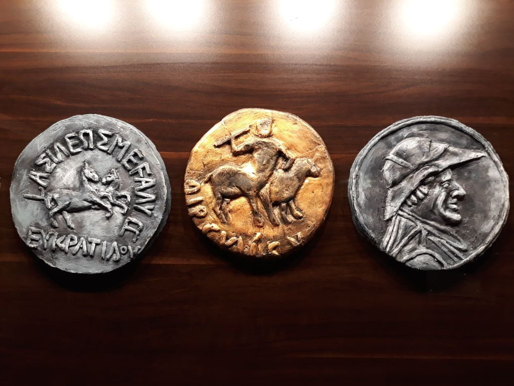 In most of the coins, Greek inscription is placed on the obverse while the translation in Prakrit Language, in Khoroshti script is found on the reverse. The boldly drawn features of the faces of early foreign invaders also make it different from other coins.