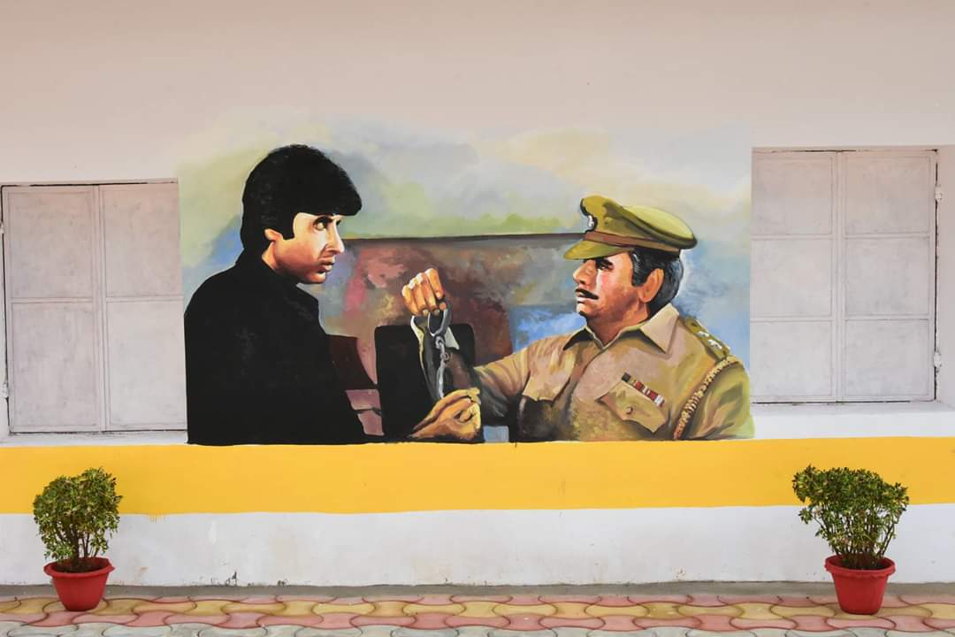 Bhubaneswar: Vijay from ‘Zanjeer’ in his bright ‘khakhee’ uniform, the famous ‘Mere Paas Maa Hai’ scene from ‘Deewar’ and many more have come alive at a newly-constructed open-air canteen in Reserve Police Line of Keonjhar.