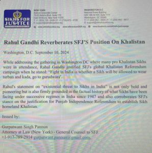 In a social media post, Pannun said that Gandhi’s statement on the “existential threat to Sikhs in India is not only bold and pioneering but is also firmly grounded in the factual history of what Sikhs have been facing under successive regimes in India since 1947”. He added, “(It) also corroborates SFJ’s (Sikhs for Justice) stance on the justification for the Punjab Independence Referendum to establish a Sikh homeland, Khalistan.” he added.