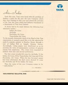 In 1946, when Tata Airlines, which until then used to function as a department of Tata Sons, was formed into a company, a name had to be chosen.