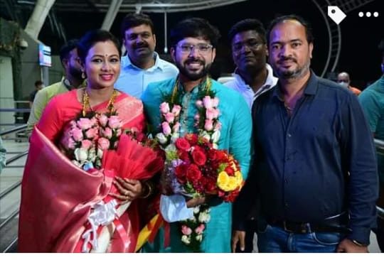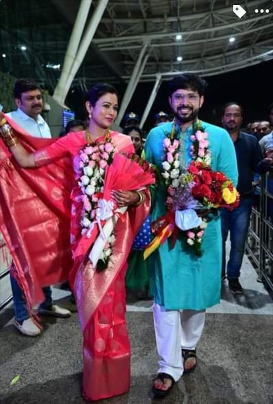 Bhubaneswar: The newlywed Ollywood star couple Sabyasachi and Archita were swamped by press and fans on arriving in Bhubaneswar on Friday evening.