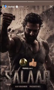 One user wrote, “South Korean superstar #DonLee watched #Prabhas’ Salaar and shared it on his Insta Story! Could this mean he’s officially confirmed for Spirit?”
