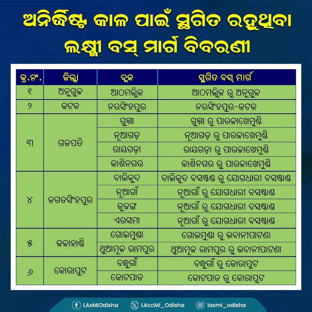 LAccMI Bus Services Suspended Indefinitely On 28 Routes In Odisha
