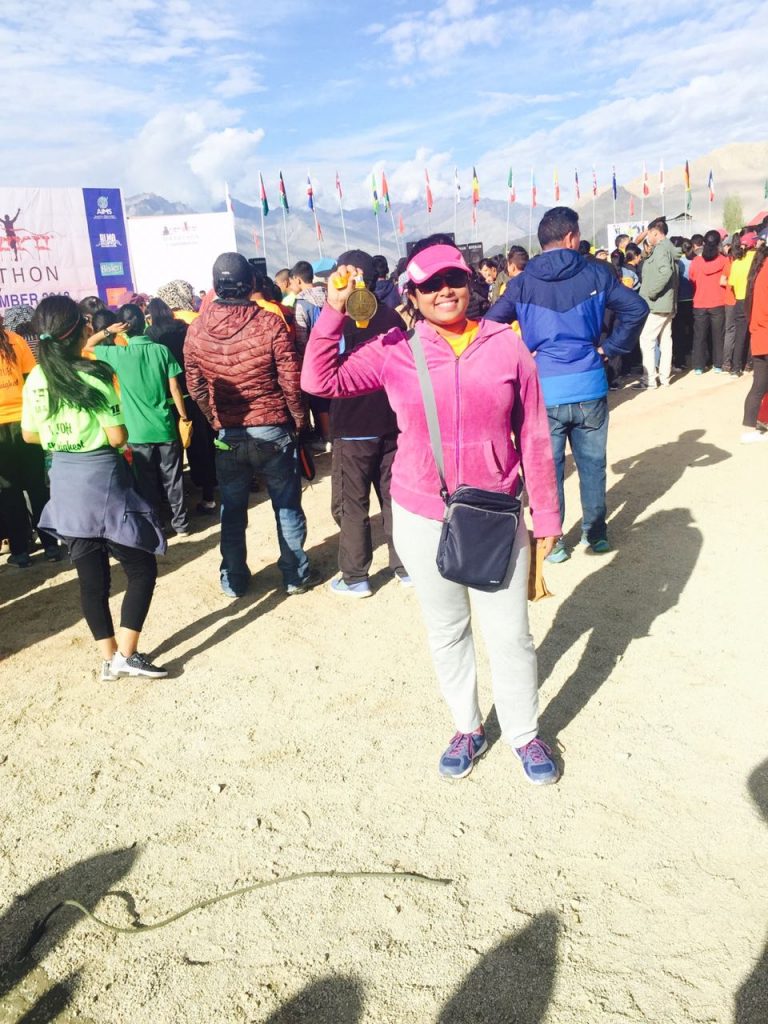 Sagarika Mishra, Soubhagya’s wife also completed the seven kilometer “Run Ladakh for Fun” event as a category of the Ladakh Marathon.