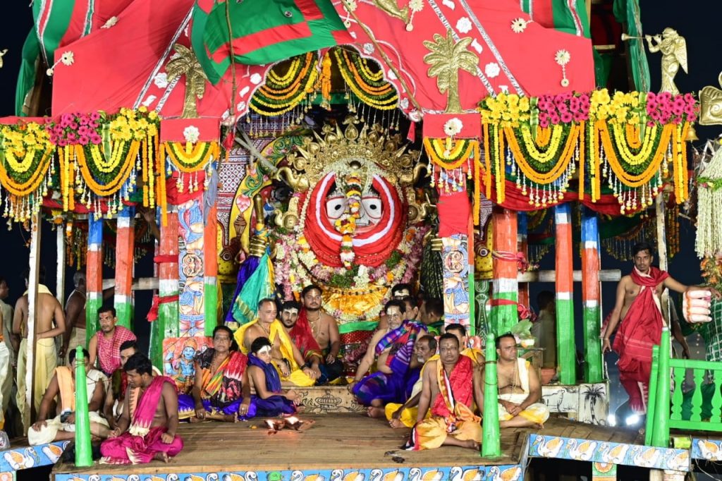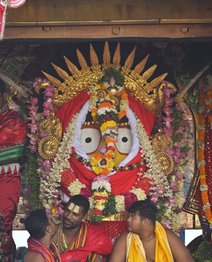 The deities were adorned with gold replica of Sri Hasta (hand) and Sri Payar (feet) besides ornaments including Sri Mukuta (crown), Sri Mayur Chandrika (peacock feather), Sri Kundal (ear ring), Sri Rahurekha (aura) and Sri Mala (necklace).