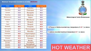 Titlagarh was followed by Boudh with 44 degree, Bhawanipatna 43.5, Malkangiri 43, Jharsuguda 42.7, Bargarh 42.6, Nuapada 42.4, Sambapur 42 and Sundargarh 42.