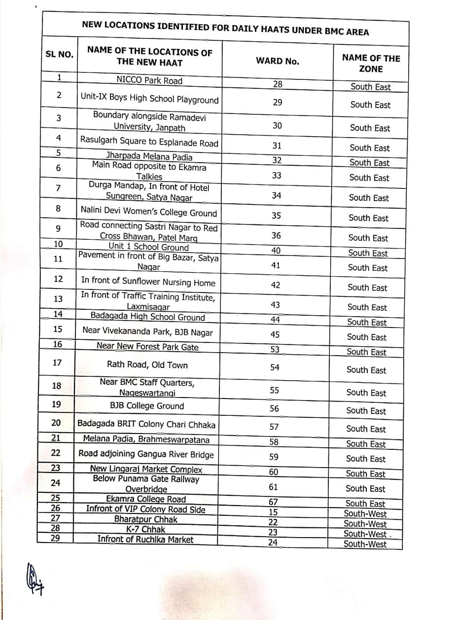 Bhubaneswar: Bhubaneswar Municipal Corporation (BMC) on Monday notified the locations of 68 markets/haats in 67 wards .
