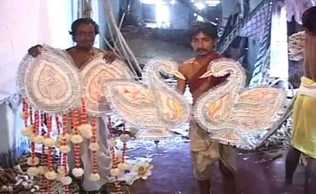 On this occasion, the deities are decorated with Mukhapadma, Kundal, Chita, Tahiya, Swans, Shankhas, Chakras and other embellishments prepared from thermocol by artists while adhering to strict rituals including consuming only