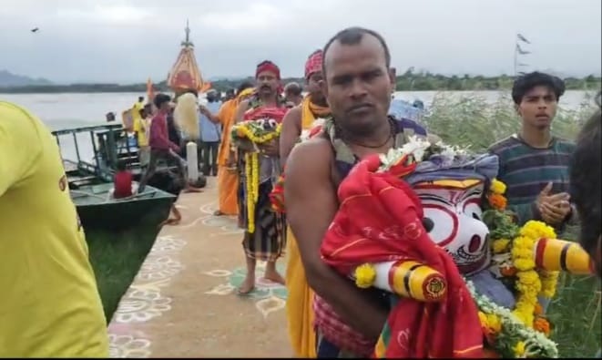 Berhampur: While the chariots of Lord Jagannath, Lord Balabhadra and Devi Subhadra are pulled on roads all over the world during Rath Yatra every year, the sibling deities of Kankana Sikhari temple in Odisha’s Khurda district travel in a chariot boat.