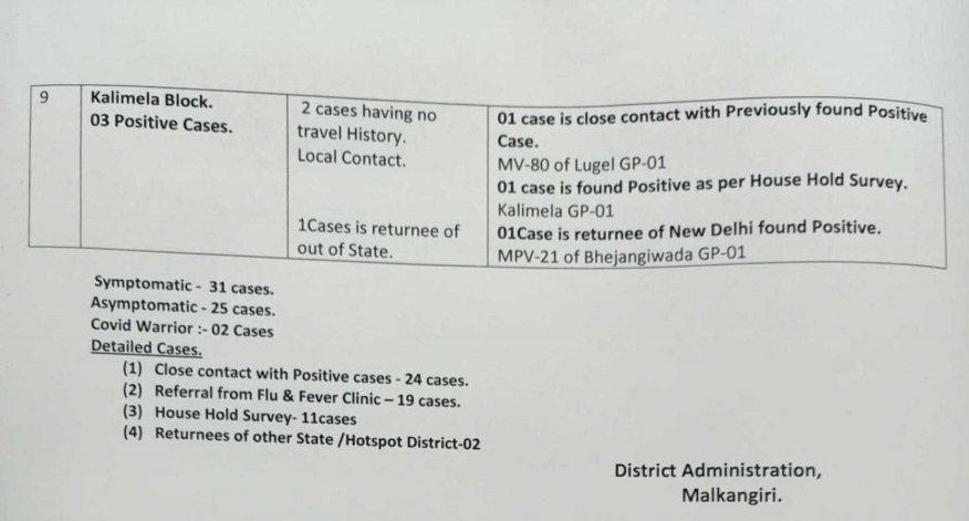 The highest of 37 cases have been reported from Malkangiri municipality followed by five from Podia block, four from Khoriput block, three from Balimela, two from Korukonda, and one each from Mathili, Chitrakonda and Malkangiri block.