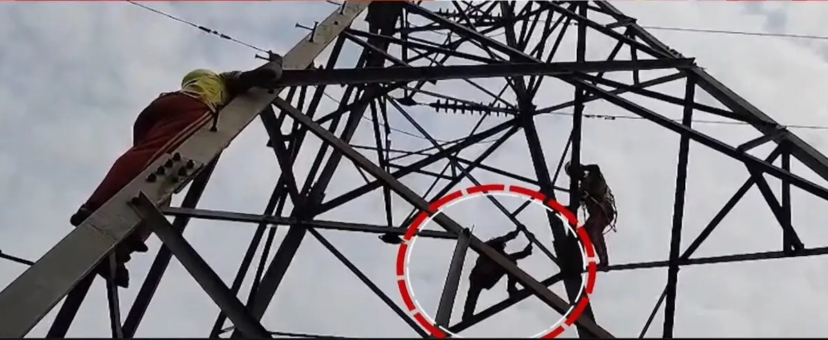 The man, identified as Naresh Marandi, scaled the tower to a height of approximately 50 feet, drawing a crowd of onlookers concerned
