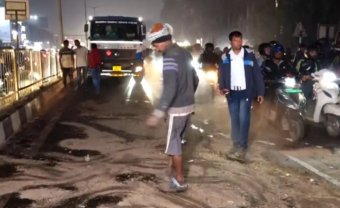 Bhubaneswar: A major traffic chaos ensued after an oil tanker developed a leak near Palasuni Square in Odisha capital, spilling fuel across the busy Bhubaneswar-Cuttack national highway (NH-16) on Wednesday night.