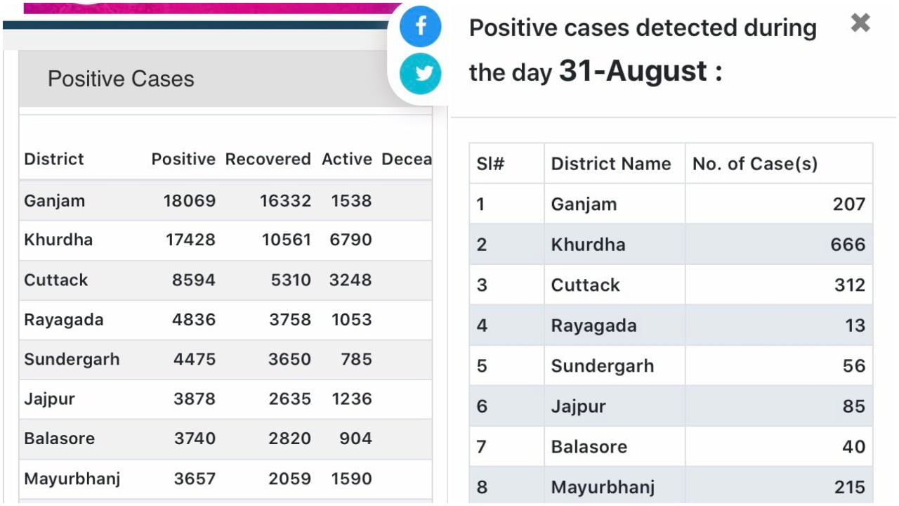 The surge in cases continued in Khurda with 666 more people testing positive for the virus in the last 24 hours followed by 312 in Cuttack and 215 in Mayurbhanj.
