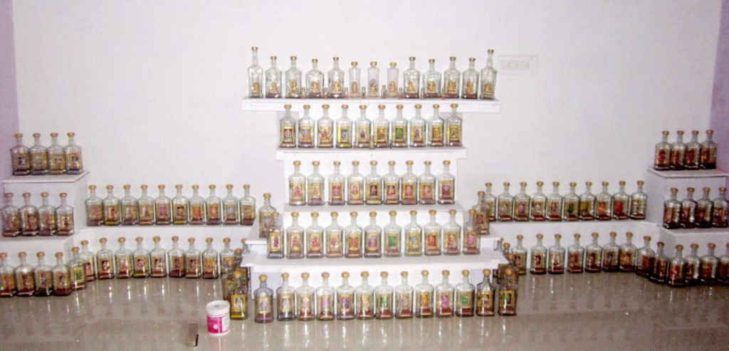 He is known for his miniature idols in bottles because of which the locals address him as ‘bottle-bhitara karigara’.