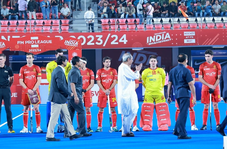 Bhubaneswar: Chief Minister Naveen Patnaik watched the Men’s FIH Pro League 2023-24 match between India and Spain at the Kalinga Stadium in Bhubaneswar on Saturday.