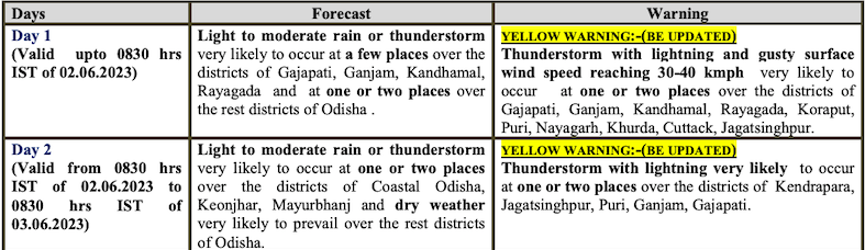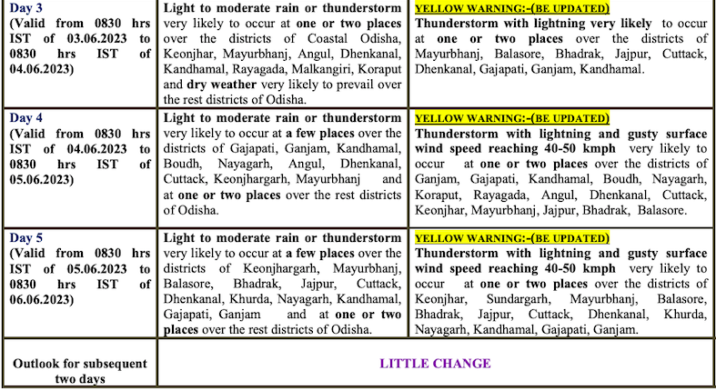 There is a forecast for thunderstorm with lightning and gusty surface wind speed reaching 40-50 kmph on June 4-5.