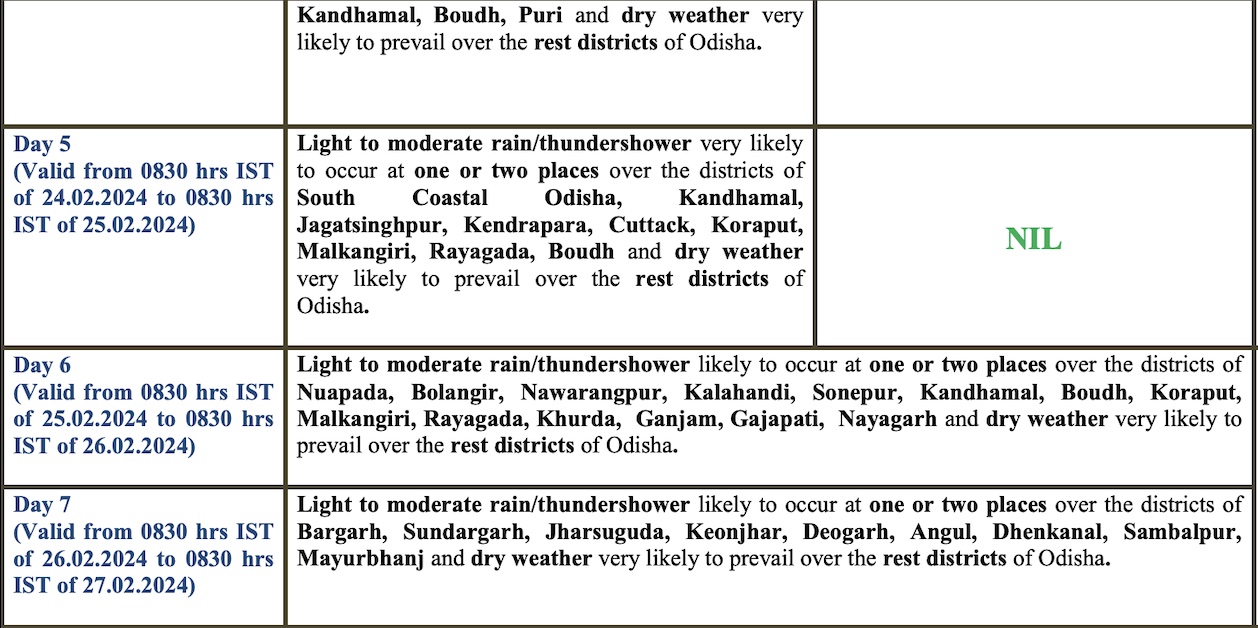 According to the weather agency, mercury is likely to hover around 35-36 degree Celsius in the state capital during the next two days and witness a slight drop thereafter amid light rain prediction in some parts of Odisha from February 22-26.