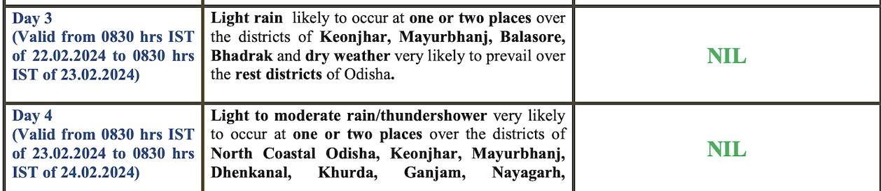 According to the weather agency, mercury is likely to hover around 35-36 degree Celsius in the state capital during the next two days and witness a slight drop thereafter amid light rain prediction in some parts of Odisha from February 22-26.