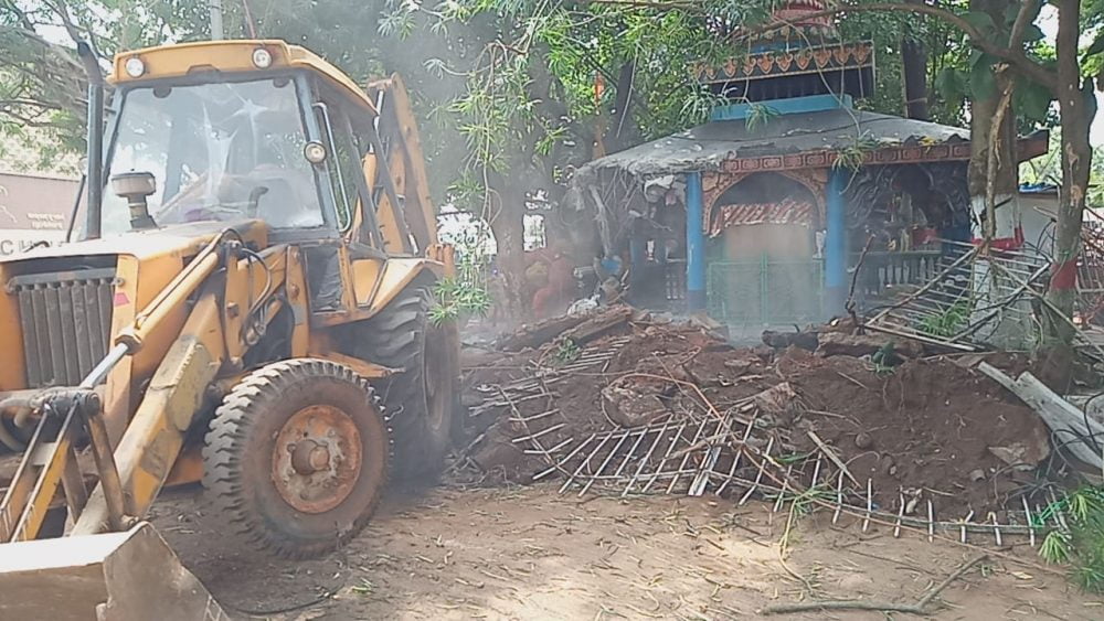 Bhubaneswar: The joint eviction squads demolished structures on Tarini Temple premises at Master canteen square in Bhubaneswar on Monday.