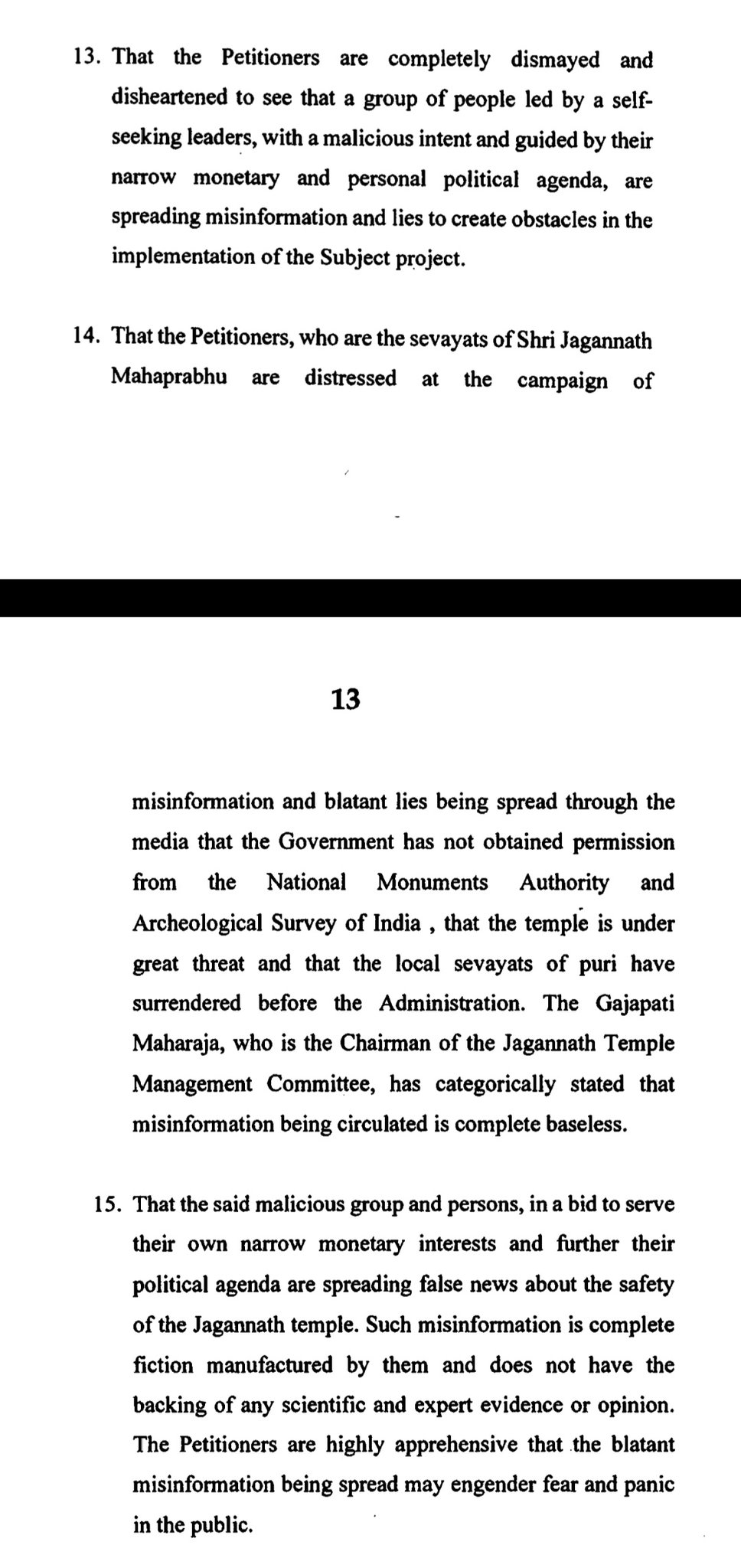 The petitioners -Raghunath Gochhikar, Hajuri Krushna Chandra Khuntia, Binayak Das Mohapatra, Harekrushna Khuntia and Batakrushna Modra– said that while all Sevayat Nijogas are enthusiastic about the project, a group of people led by self-seeking leaders are spreading misinformation and lies to create obstacles in the implementation of the project.